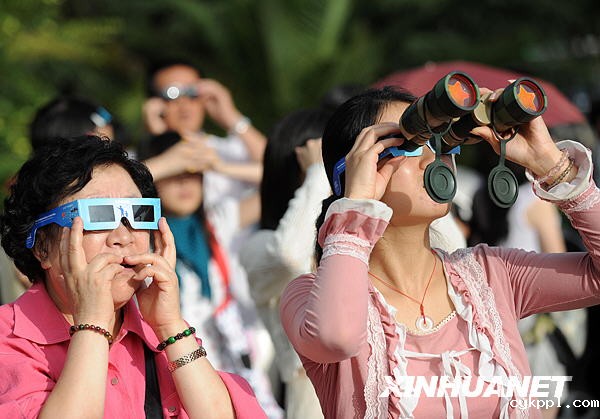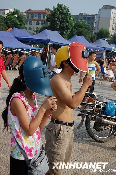 7月22日,昆明市民在昆明市东风广场观看日食奇观。新华社记者蔺以光摄