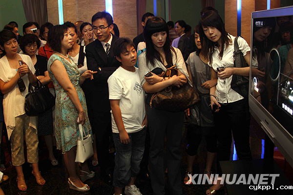7月22日,上海观众通过电视观看日全食一刻。新华社记者张明摄