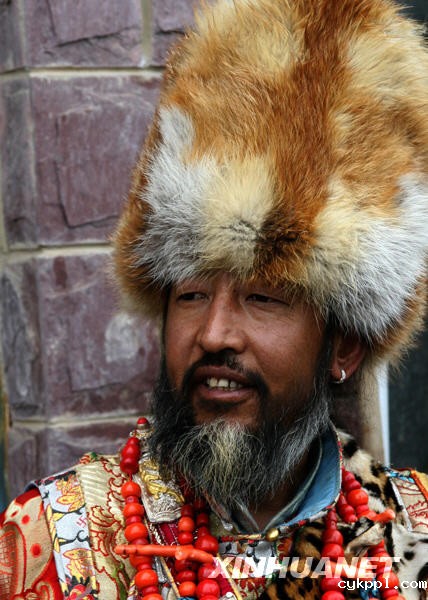 香格里拉街头一位身着藏式豪华盛装的康巴汉子(2007年9月摄)。新华社记者陈海宁摄