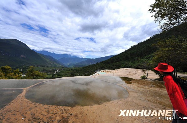 一名女游客在香格里拉白水台旅游区观光(2009年8月21日摄)。新华社记者陈海宁摄