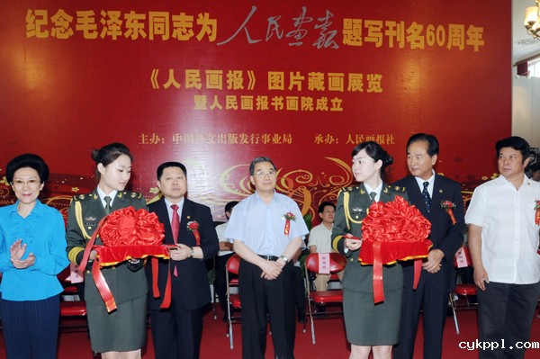 《人民画报》以热烈而简朴的方式,在中国人民革命军事博物舘举行庆祝活动,纪念毛泽东同志为《人民画报》题写刊名60周年,与此同时,《人民画报》图片藏画展也在这里开幕,人民画报书画院揭牌成立。