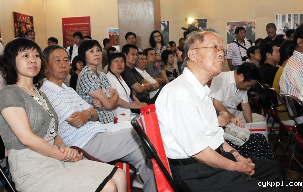 6. 出席《人民画报》创刊60周年纪念活动的老新闻工作者在拍摄《人民画报》图片展的经典照片。