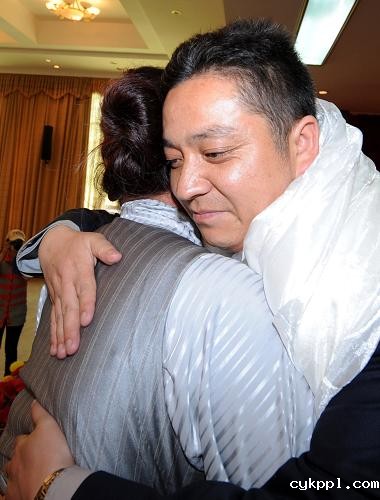 7月8日,一名藏族干部与来自北京西城区的援藏干部唐海蛟(右)深情拥抱。