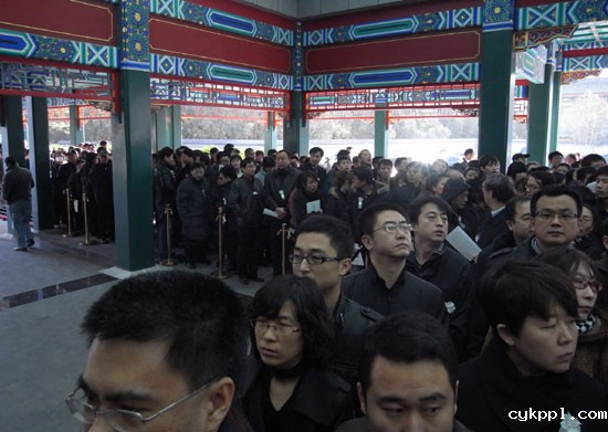 前来八宝山吊唁范敬宜先生的群众排起了长队。