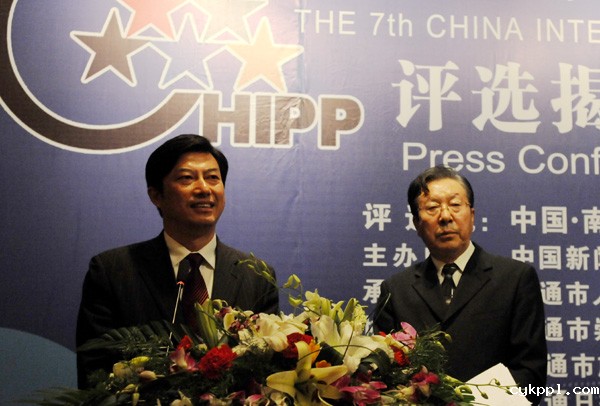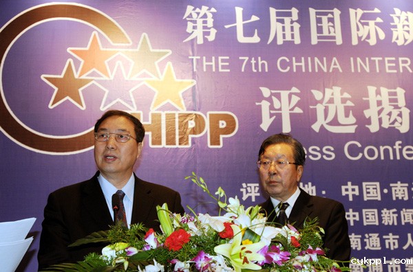 南通市人民政府副秘书长、南通市人民政府新闻发言人徐国祥(左)上讲话