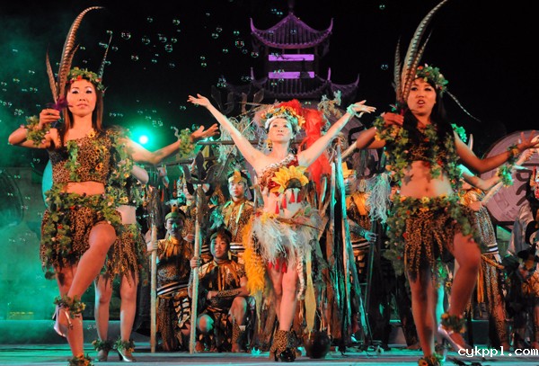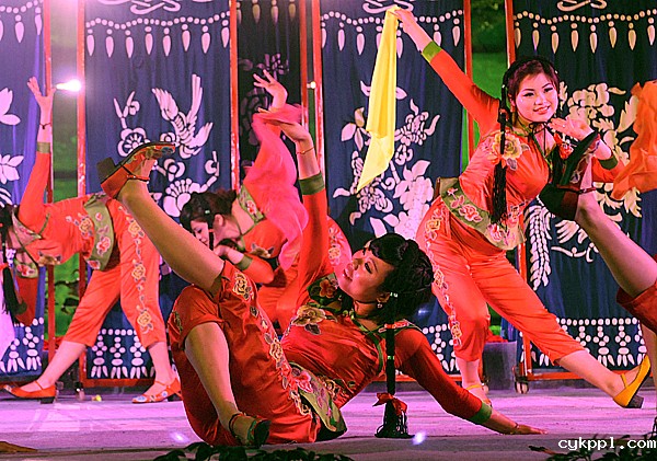 17、《我在阆中等你》文艺晚会剧照——民俗舞蹈《亮花鞋》。绣花鞋是阆中传统的产品,这项传统的制鞋工艺流传至今,作为旅游产品出售。阆中市文化和旅游局以文艺的形式演绎当地悠久的文明史,精心排练一台以反映当地各个历史时期文化文艺晚会,为前来旅游的各地客人演出。