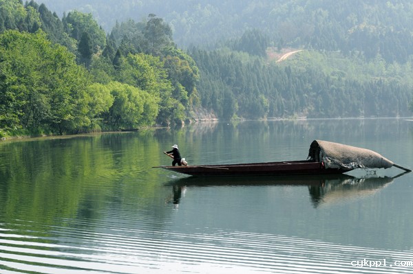 21、生活在构溪河国家级湿地保护区的渔家划船渡水。这里林木葱郁、水清如镜、千鸟尽翔、风景如画。