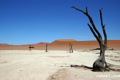 北京时间6月23日消息,“死亡谷”(Dead Vlei)是指干涸的沼泽或湖泊。它是位于纳米比亚苏索斯维利盐田里的一片令人惊叹的白色粘土洼地的名字。对于这一奇观的形成,已经有科学的解释,但更多的人宁愿相信神话:两个天神在激战,其中一方毁灭了另一方,并诅咒这一地区从此失去生机。获胜的天神用高耸的沙丘把死亡谷的四周围得水泄不通,死亡的远古树木显示了天神诅咒的巨大威力。在近900年的时间里,这里寸草不生,没有任何生命迹象。