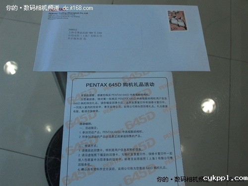 购机换礼活动的说明和信封,方便邮寄回宾得公司换取礼品(下页就有真机了哦)