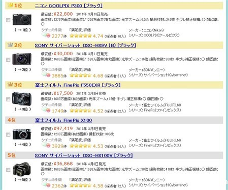 在这期日本知名报价网“kakaku”的DC排行榜中,和上期的排行一样,毫无轻薄型卡片机的踪影,而像富士F505、索尼HX9这类便携长焦关注度还不错。不过大热的还得属便携准专业相机,共占据6个名额,并且还包括上星期刚发布的尼康消费级DC新旗舰P7100,接下来看看具体的排名情况吧。