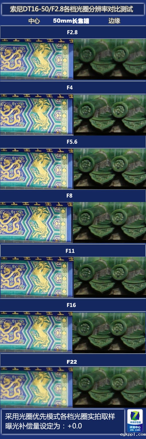 这支镜头的长焦端细节表现力几乎与广角端表现相差无几,在收缩1到2档光圈后,其锐度表现可以达到峰值表现。F4-F5.6是这支镜头比较值得一用的两档光圈。