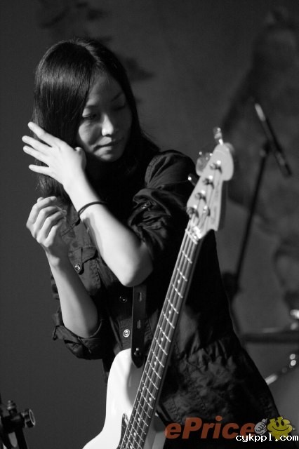 ▲图十六:熊宝贝乐团主唱兼贝斯手。在歌曲表演的空档,主唱饼干不经意地侧身整理起因表演而乱掉的头发,这样的画面是不是很美呢?