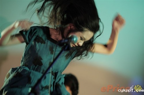 ▲图二十二:这位太太键盘手兼主唱阿牧在表演中突然一跃而起,她飞扬的头发与洋装美呆了。