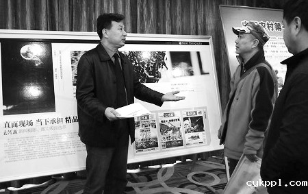 会议现场,本报的摄影作品展板得到了众多媒体人的好评。记者王灿文 记者陈晓东图