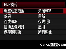 HDR模式设置菜单