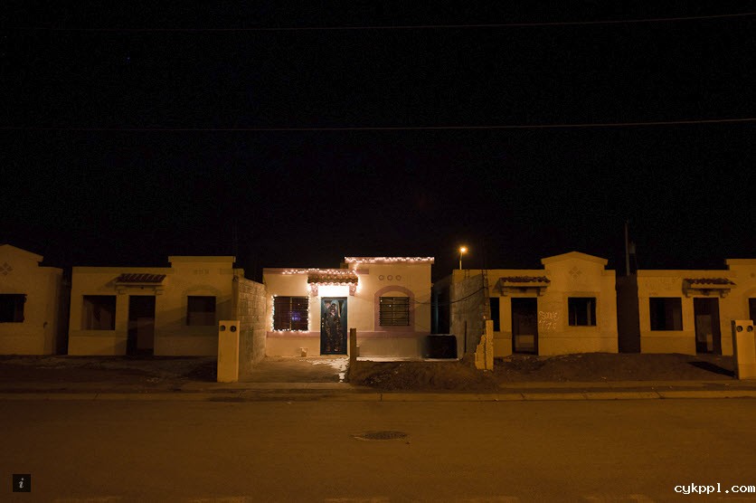一户人家装饰了他们的房屋。因为失业和暴力事件,很多人都遗弃了房子逃离去别的城市。图上这一地区几乎都受锡那罗亚犯罪集团控制。