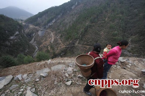 连接外界的一条山路是祖辈留下的,十分险峻,村民世代行走在这条山路上。