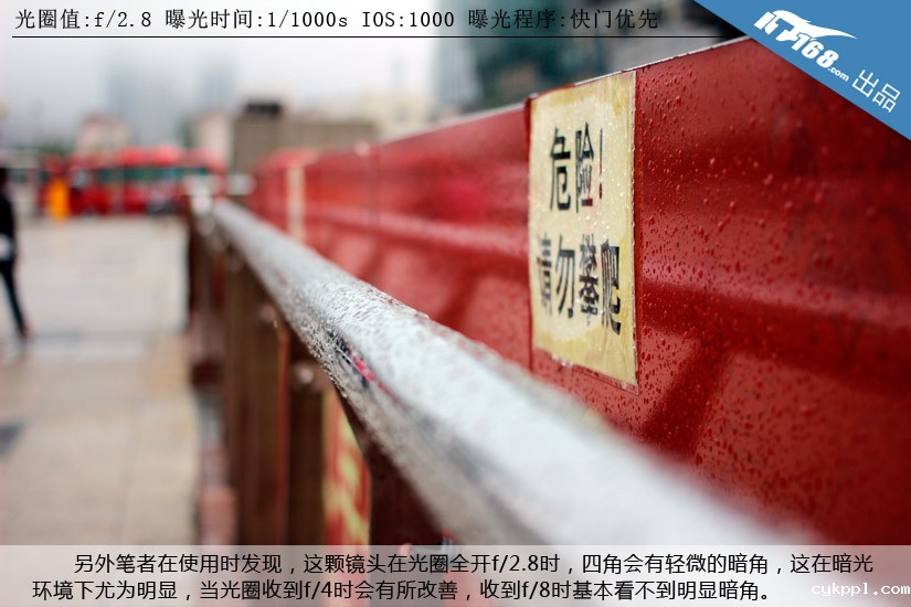 另外笔者在使用时发现,这颗镜头在光圈全开f/2.8时,四角会有轻微的暗角,这在暗光环境下尤为明显,当光圈收到f/4时会有所改善,收到f/8时基本看不到明显暗角。