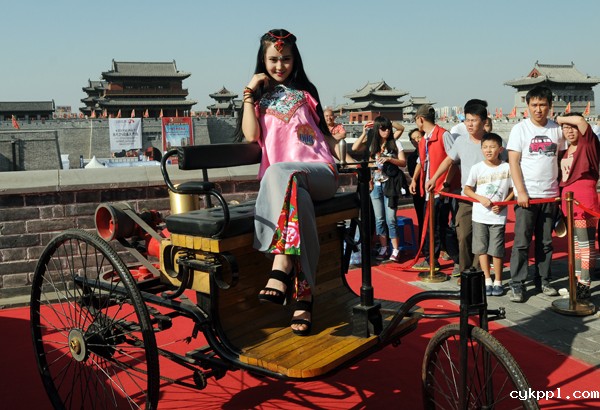 名车、名模在古城墙上一展风采。王呈选摄影报道