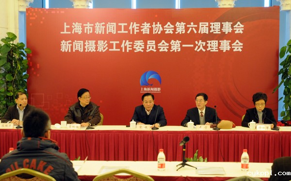 图为上海市新闻工作者协会新闻摄影工作委员会成立大会主席台。