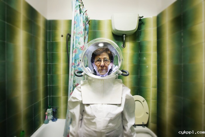 意大利摄影师Graziano Panfili拍摄了一组以“Alienation”命名的系列照片,这组照片的灵感来自于人们渴望寻求一种与众不同的生活并以这类人的肖像为素材进行了实景拍摄。这些人身着宇航服,看起来像是刚刚返回地球或是准备开启太空之旅,其实拍摄地点都是一些普通的场景,比如光线朦胧的卧室,一望无垠的雪域。