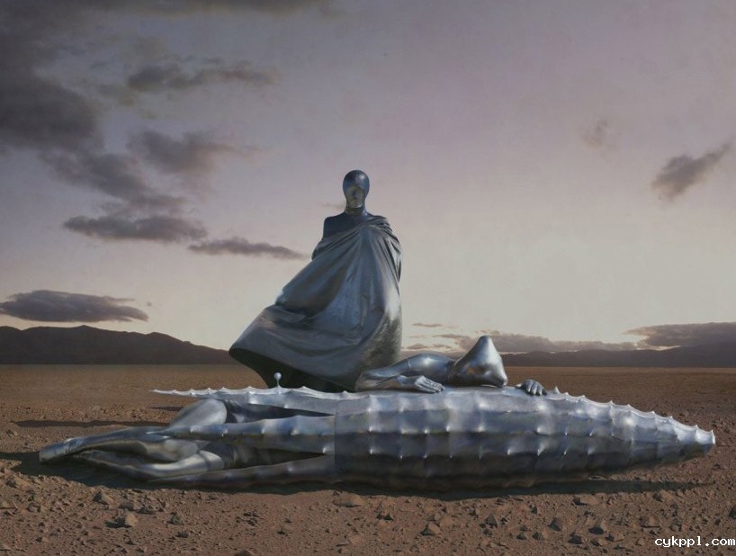 艺术家利用NASA提供的“勇气号”和“机遇号”拍摄的火星实景照片,再拼接上自己想象的图景,将亦真亦幻的视觉元素融入其中,创造了一个个科幻的、超现实的情景。艺术家还为这些梦境般的场景专门创作了一系列雕塑和装置作品,并让两名女探险家漫游在火星那荒凉、红色的风景中,似乎在寻找和面对着未知世界。