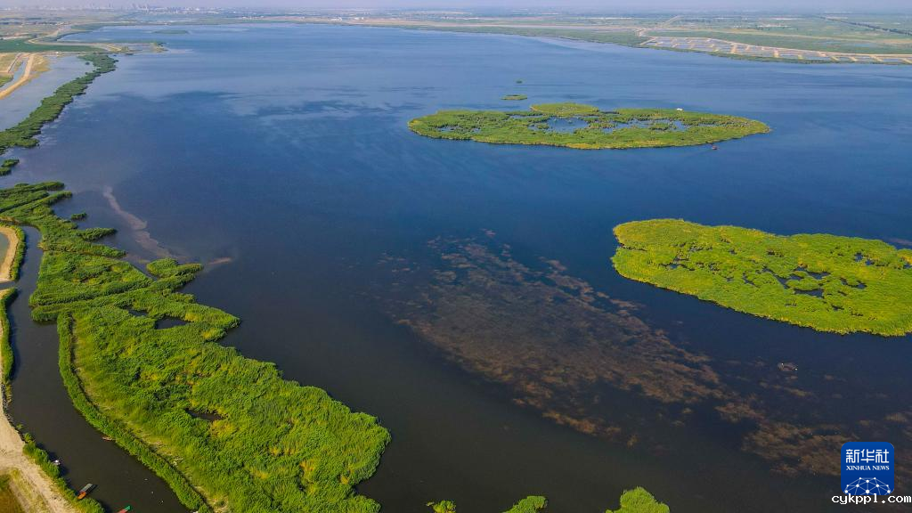 这是内蒙古乌梁素海景色(无人机照片,7月23日摄)。