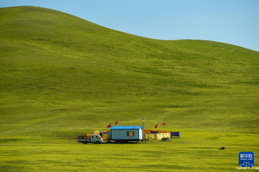 这是内蒙古呼伦贝尔草原景色(6月6日摄)。